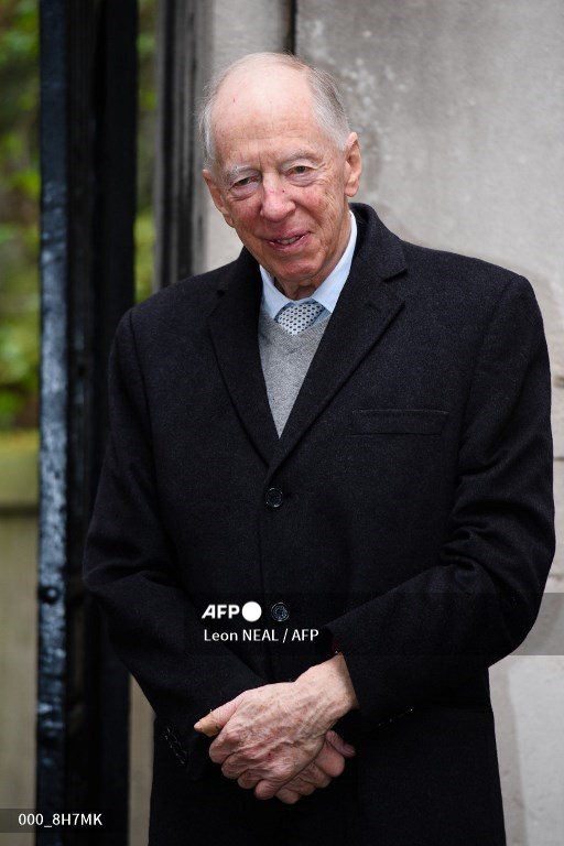 British banker Jacob Rothschild arrives at St Bride's church on Fleet Street in central London on March 5, 2016, to attend a ceremony of celebration with Australian born media magnate Rupert Murdoch and former US model Jerry Hall, a day after their official marriage. Rupert Murdoch married model Jerry Hall in London on Friday March 4, 2016, less than two months after they got engaged, prompting the media mogul to describe himself as the "luckiest" man in the world. It is the fourth marriage for 84-year-old Murdoch and technically the first for Hall, 59, although she had a long-term relationship and four children with Rolling Stones frontman Mick Jagger.Leon NEAL / AFP
