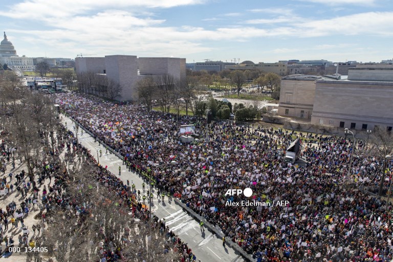 The crowd at the March for Our Lives Rally as seen from the roof of the Newseum in Washington, DC on March 24, 2018. Galvanized by a massacre at a Florida high school, hundreds of thousands of Americans are expected to take to the streets in cities across the United States on Saturday in the biggest protest for gun control in a generation.Alex Edelman / AFP
