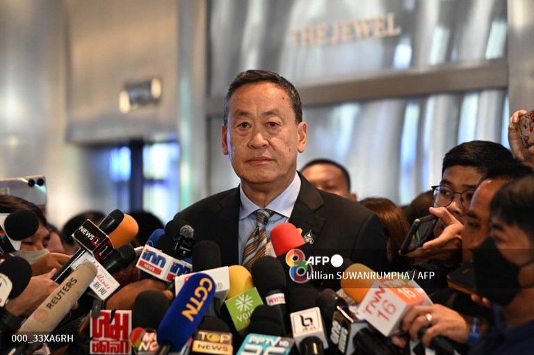 Thailand's Prime Minister Srettha Thavisin answers questions after attending the launch event for the technology hub "SCBX Next Tech" at the Siam Paragon shopping centre in Bangkok on October 4, 2023, a day after a shooting at the mall that left two people dead. A 14-year-old boy was arrested October 3 after a shooting at a packed Bangkok mall that left two people dead and five wounded, and sent hundreds of panicked shoppers running in terror into the streets.Lillian SUWANRUMPHA / AFP